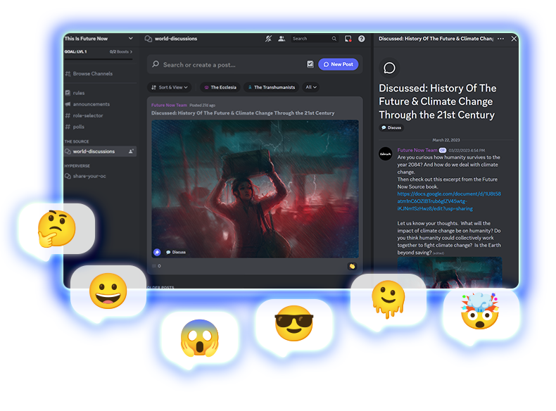 Our Discord is a playground for creatives to to explore the intersection of science, futurism and popular culture.